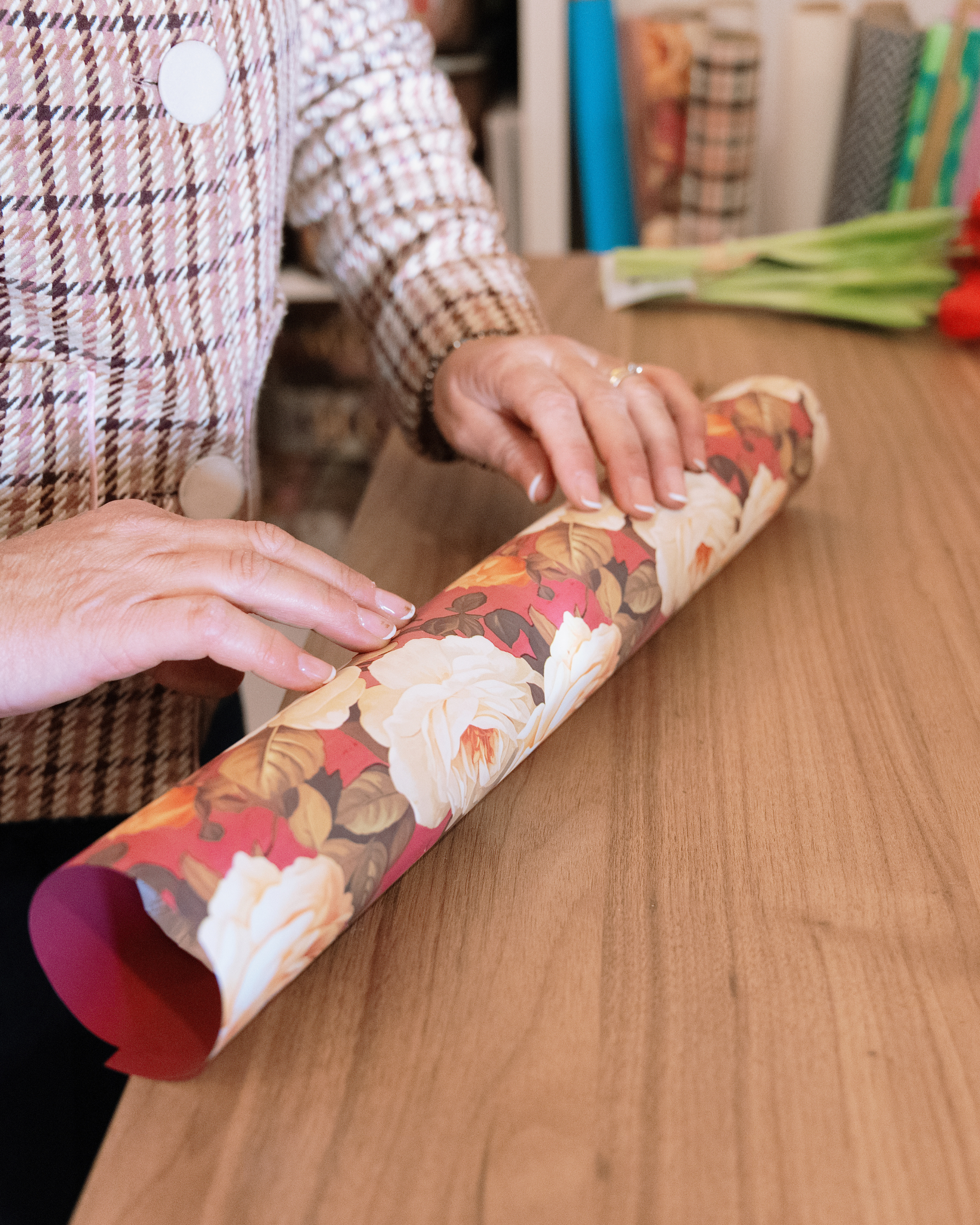 Per questo capitolo, ho voluto catturare Mariagrazia circondata dalle sue creazioni, dove la luce accarezza le trame dei tessuti e la lucentezza delle ceramiche.